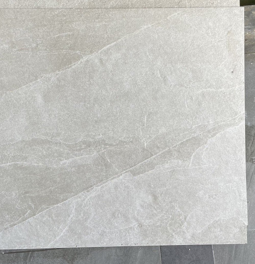 60x60 NEPAL CREAM stone-look tile with R10 anti-slip surface. Bright, warm tone for indoor and outdoor floors and walls.