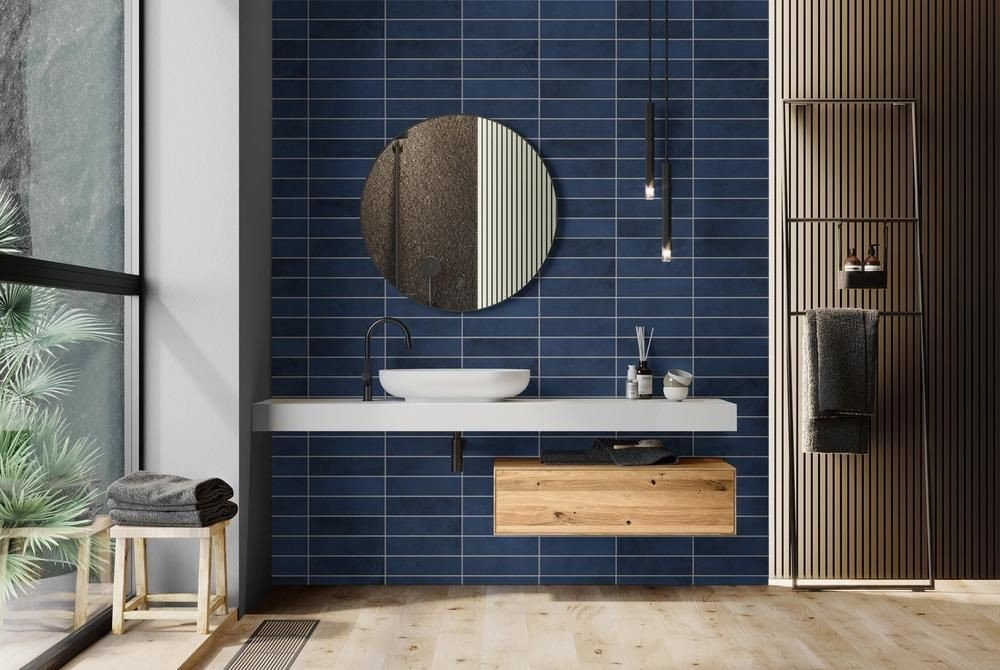 GP CALLIOPE BLUE 7.5×30 glossy subway tile in deep blue tone for interior walls. Stylish, modern, and premium quality from COTTO.