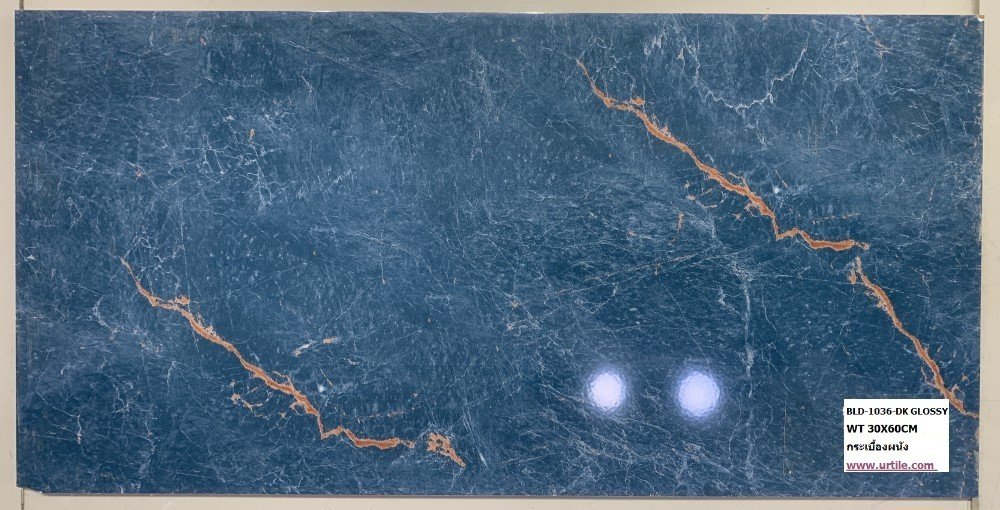 กระเบื้องผนังสีน้ำเงินเข้ม ลายหินอ่อน เส้นเวนล์ทอง ผิวเงา รุ่น BLD-1036-DK ขนาด 30x60 ซม.