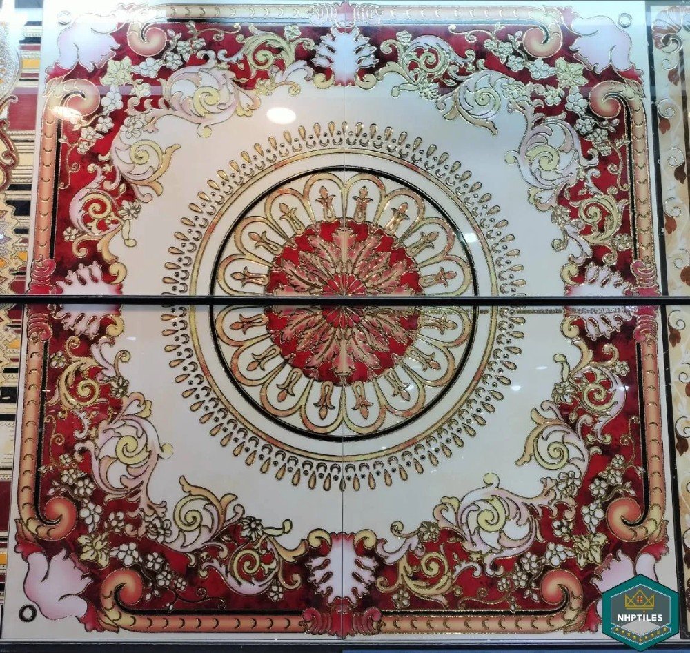 กระเบื้องชุดดอกกลาง Royal Baroque Red 120x120ซม. แกรนิตโต้ลายพรมสีแดงทองสไตล์ยุโรป (ชุด 4 แผ่น) เพิ่มความหรูหราให้ห้องโถง เกรดพรีเมียม