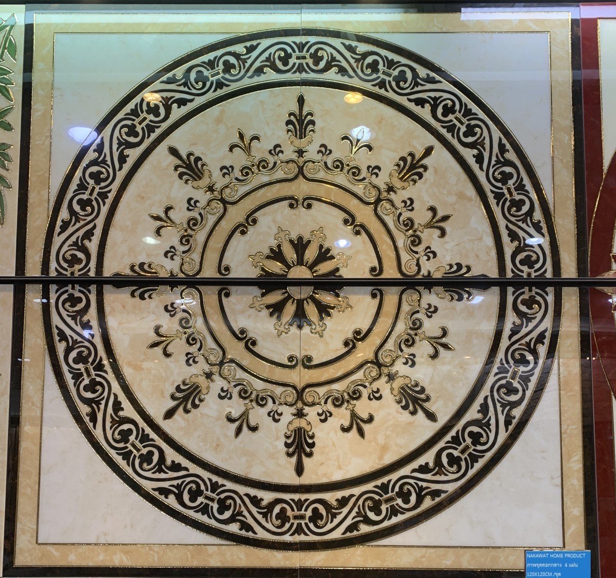Golden Baroque Crest" กระเบื้องชุดดอกกลางแกรนิตโต้ 120x120ซม. (ชุด 4 แผ่น) โดดเด่นด้วยลายบาโรกสีทองตัดขอบเข้มสุดหรู สร้างจุดนำสายตาที่โอ่อ่า สง่างาม